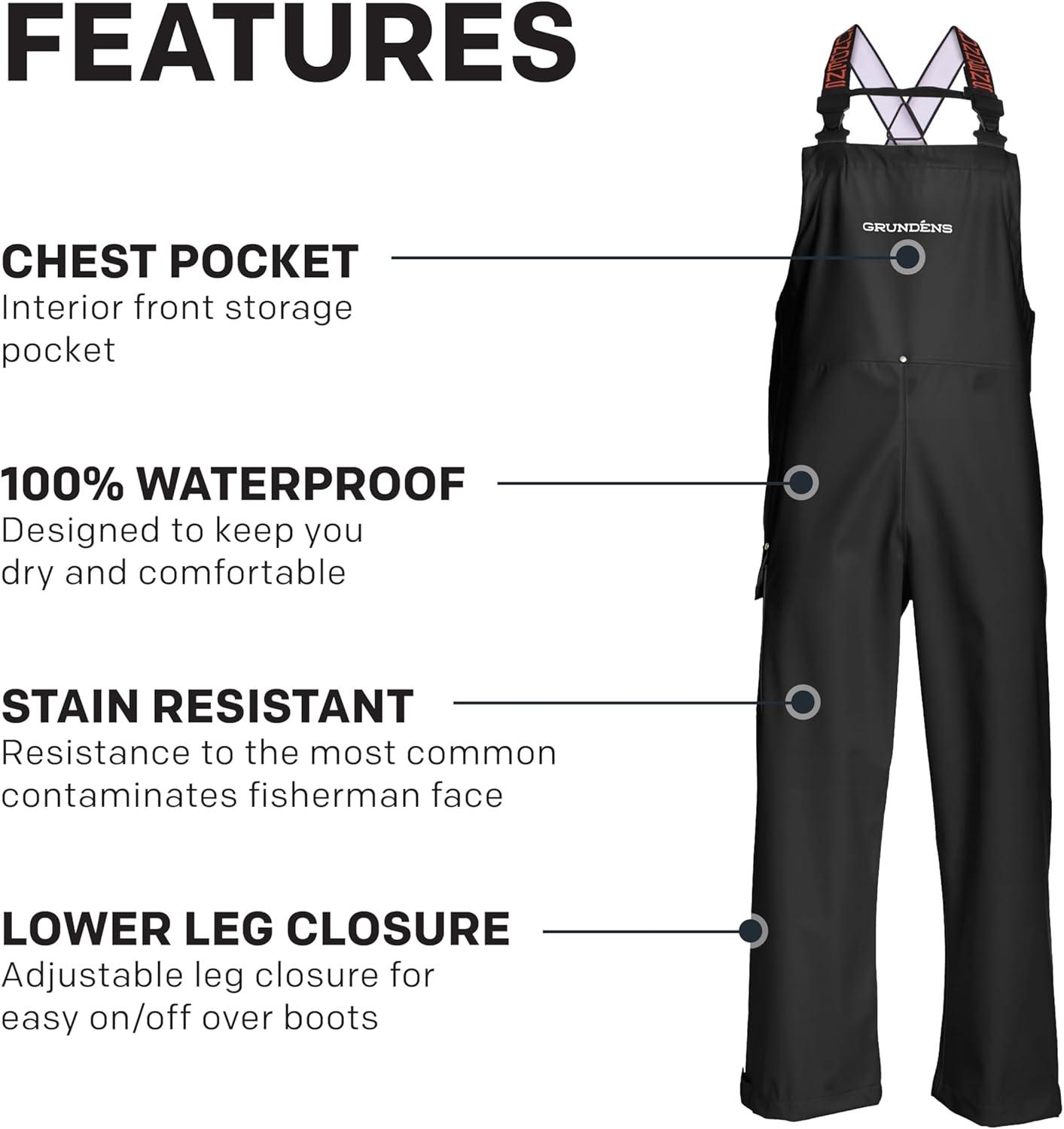 Grundéns Men’s Neptune Commercial Fishing Bib Pants, Waterproof, Adjustable(Black)